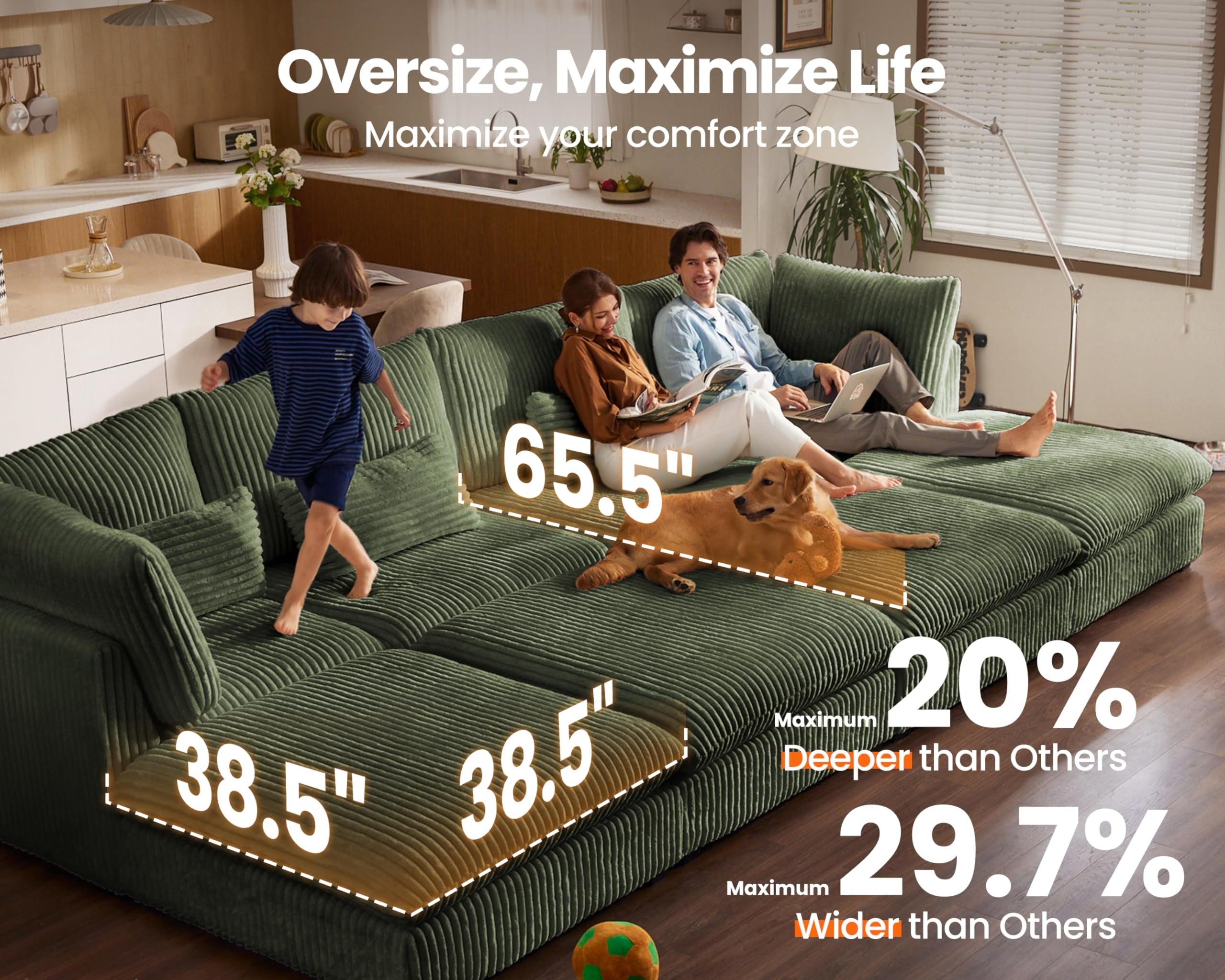 OVIOS 104" L-Shape Modular Couch with Chaise, Plush Corduroy Fabric, No Assembly Required